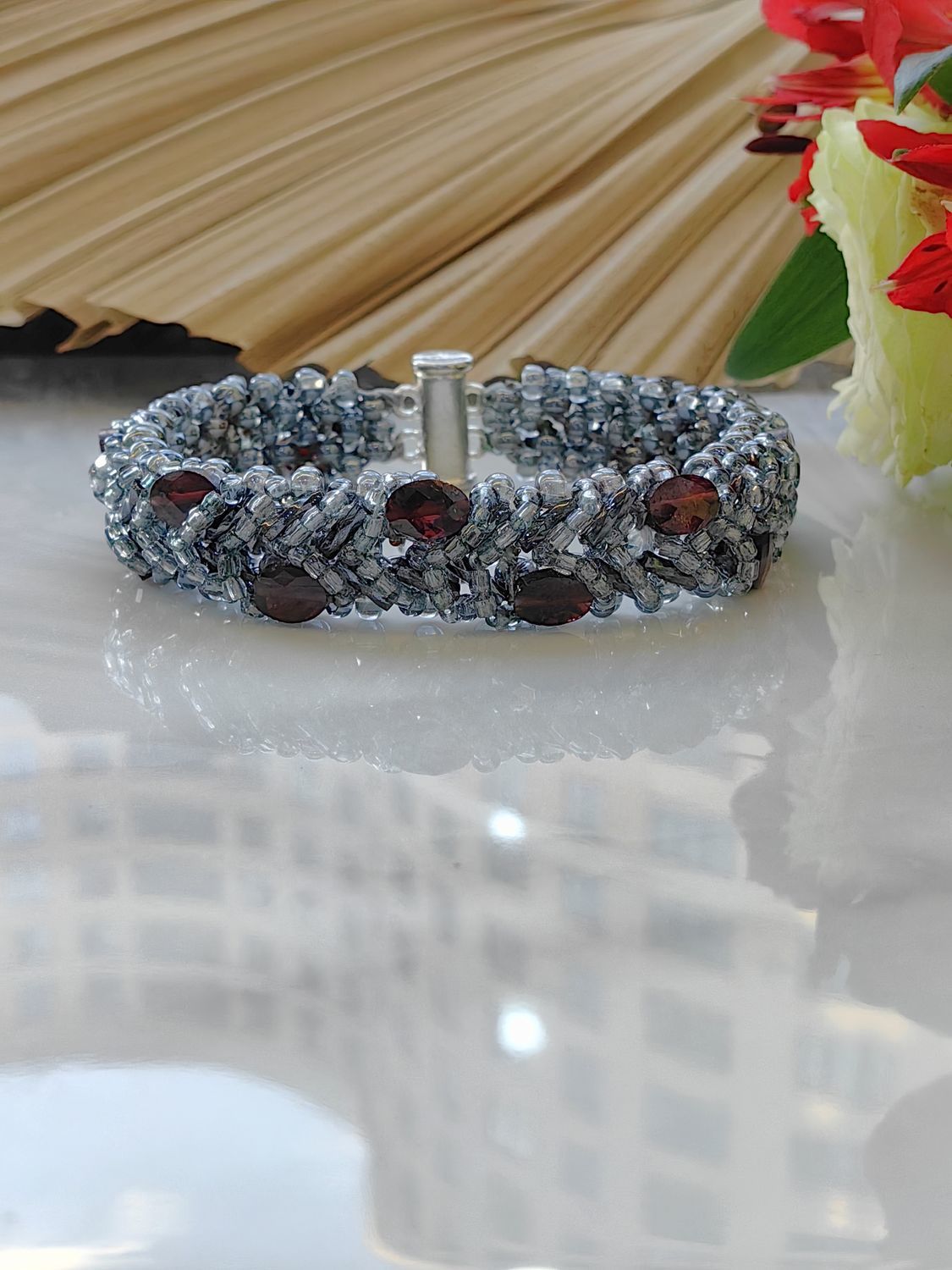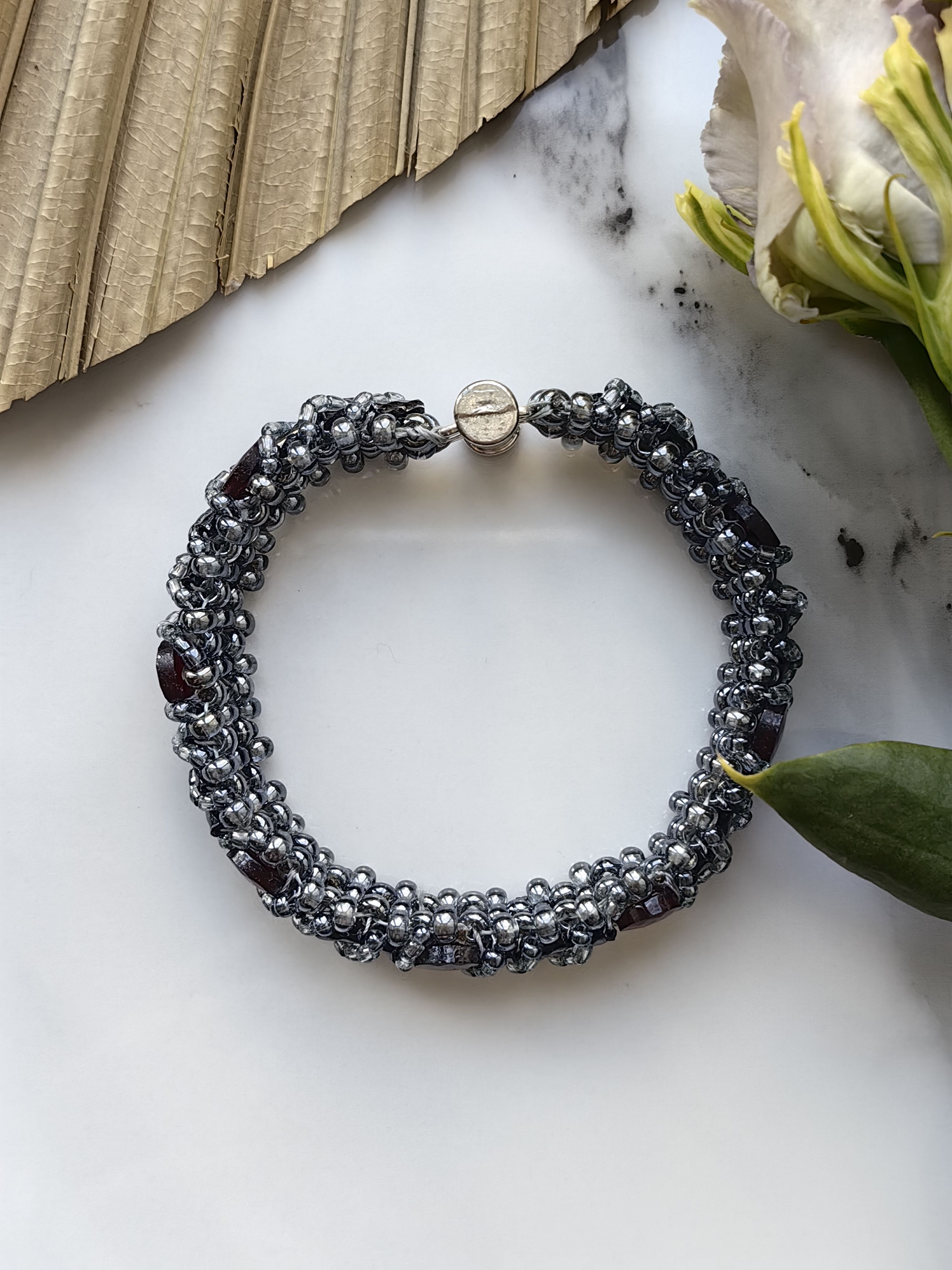 Браслет из бисера и граната — изящество, вдохновлённое природой