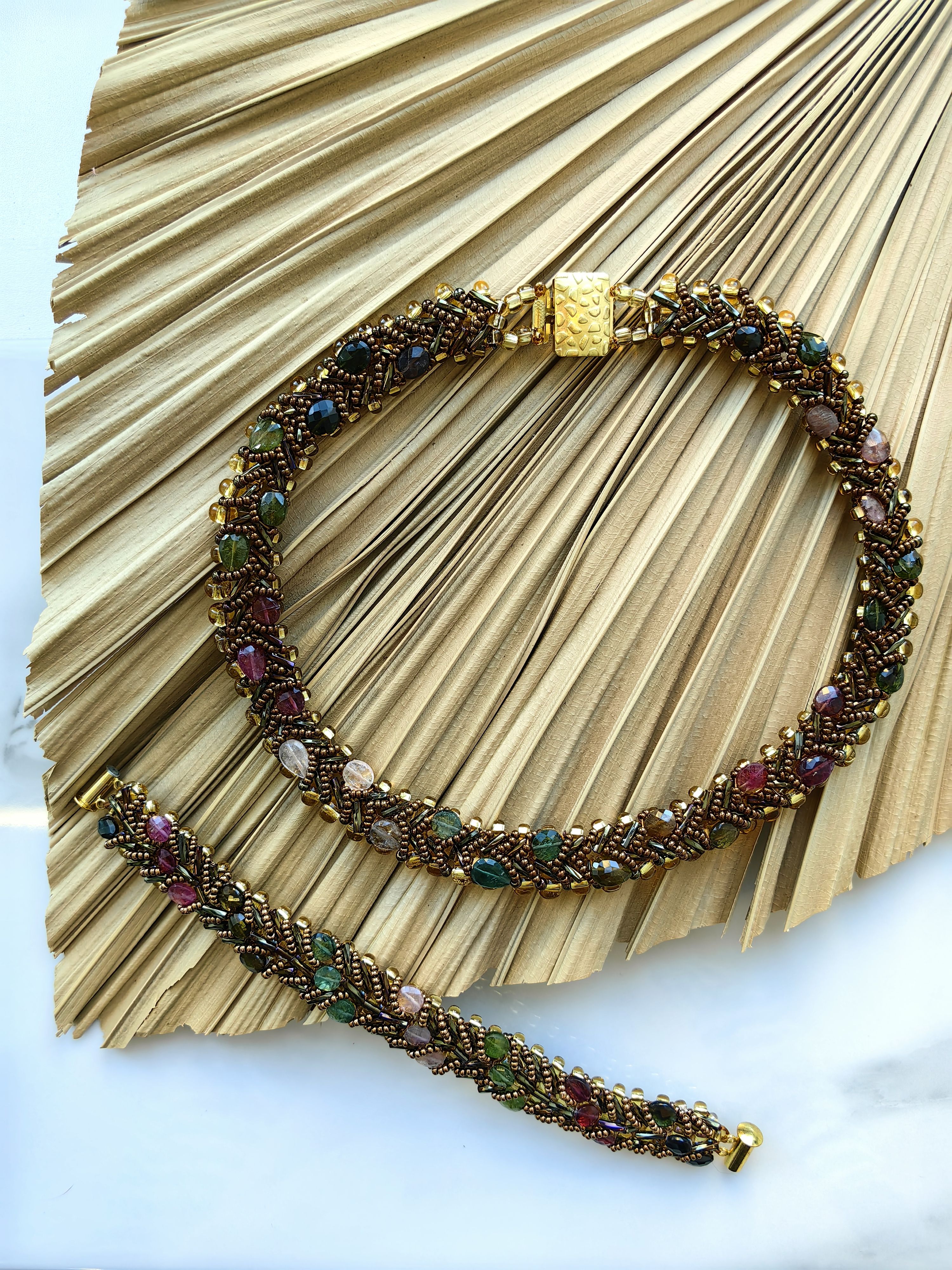 Ручной работы браслет "Змейка" притягивает внимание изящным волнообразным плетением и сиянием натурального турмалина — камня, наполненного внутренним светом и многогранной энергетикой. Каждый камень в этом украшении — уникальный штрих природы, от нежных зелёных оттенков до насыщенного малинового.