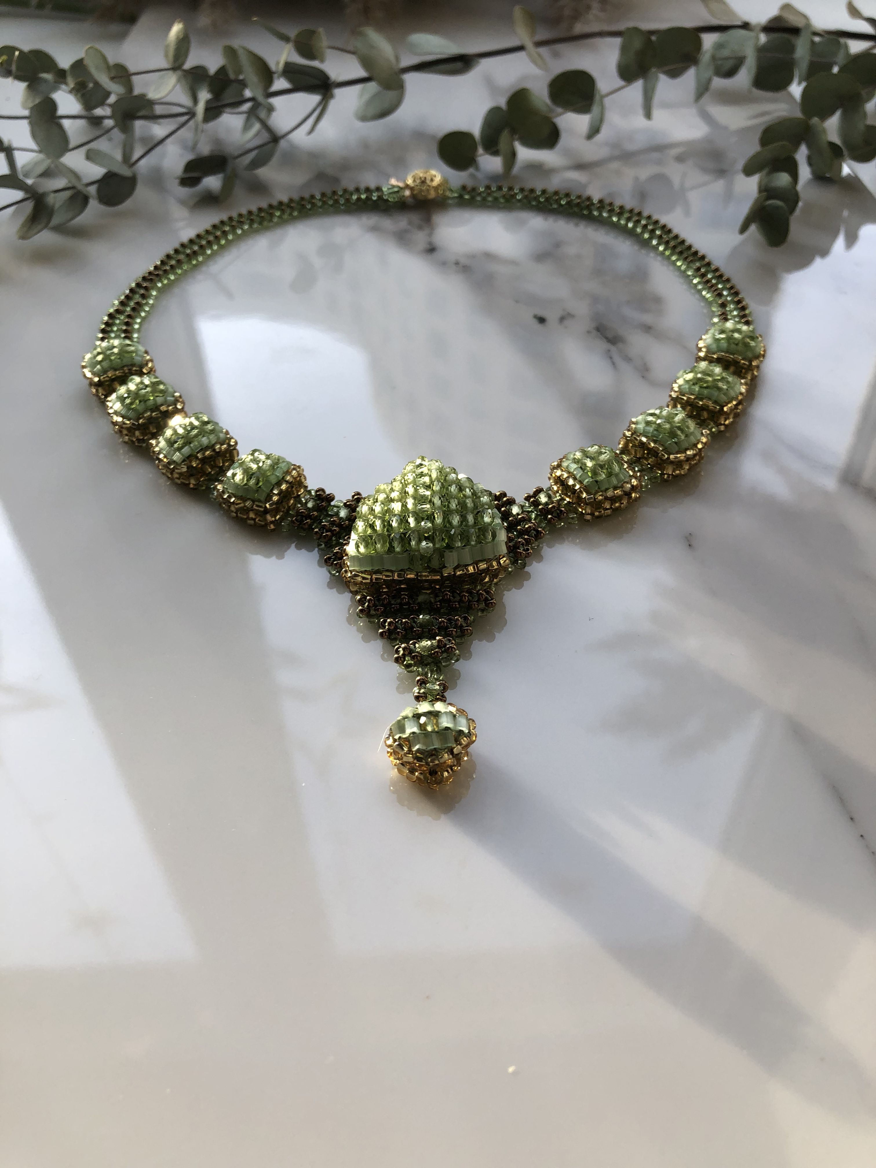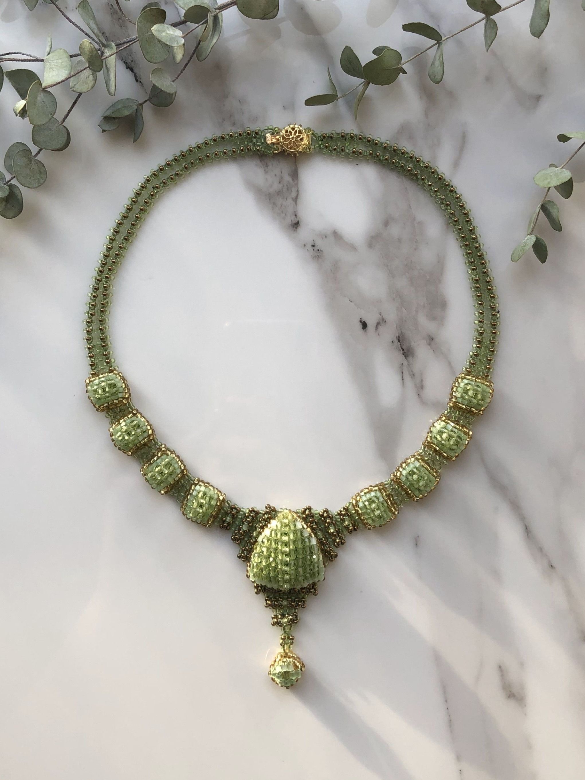 Колье "Ника" с хризолитом — лёгкость природы и сияние изящества