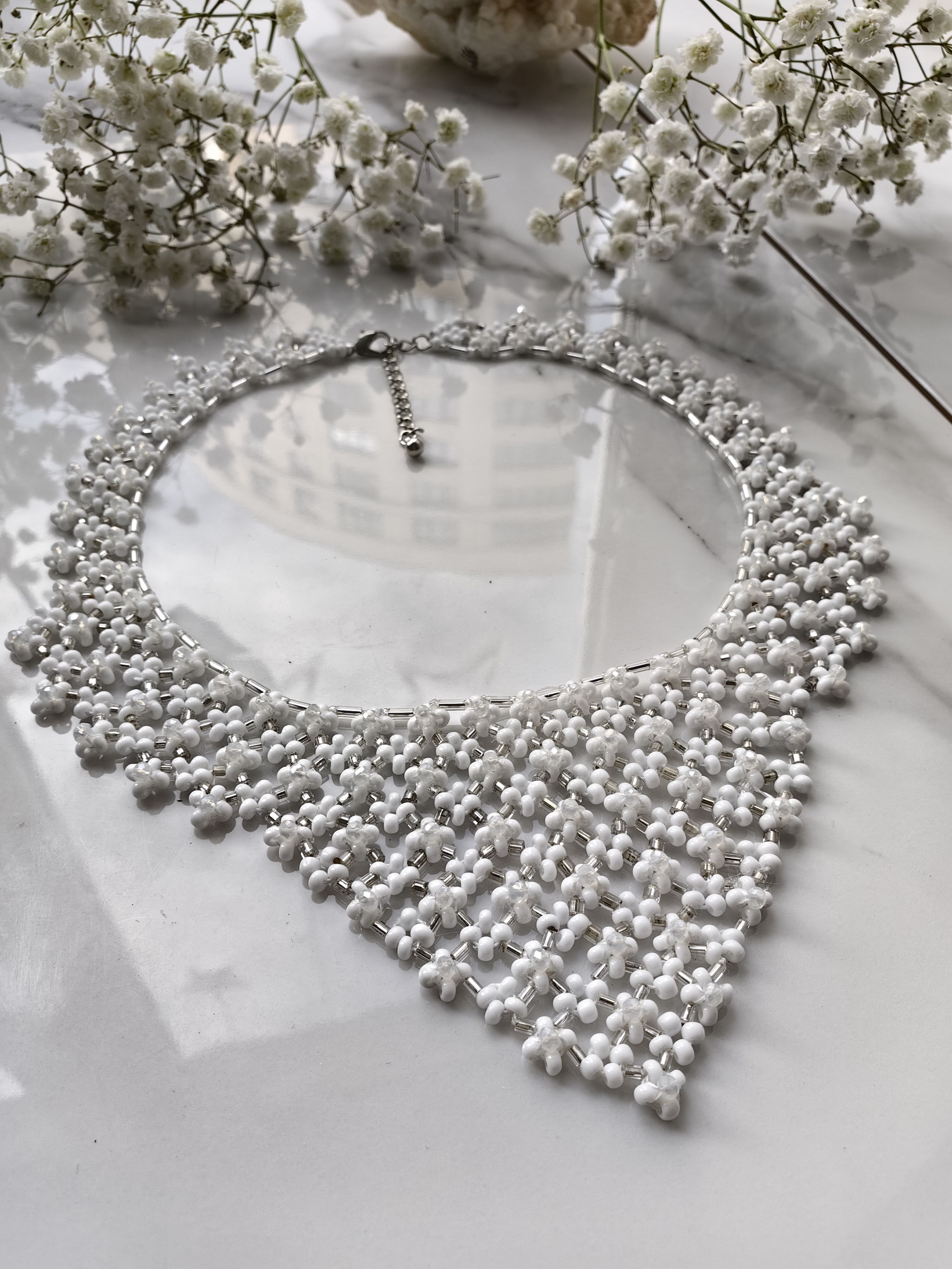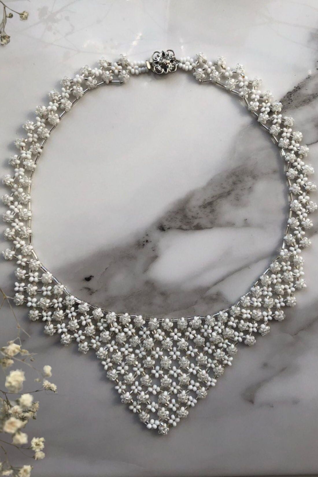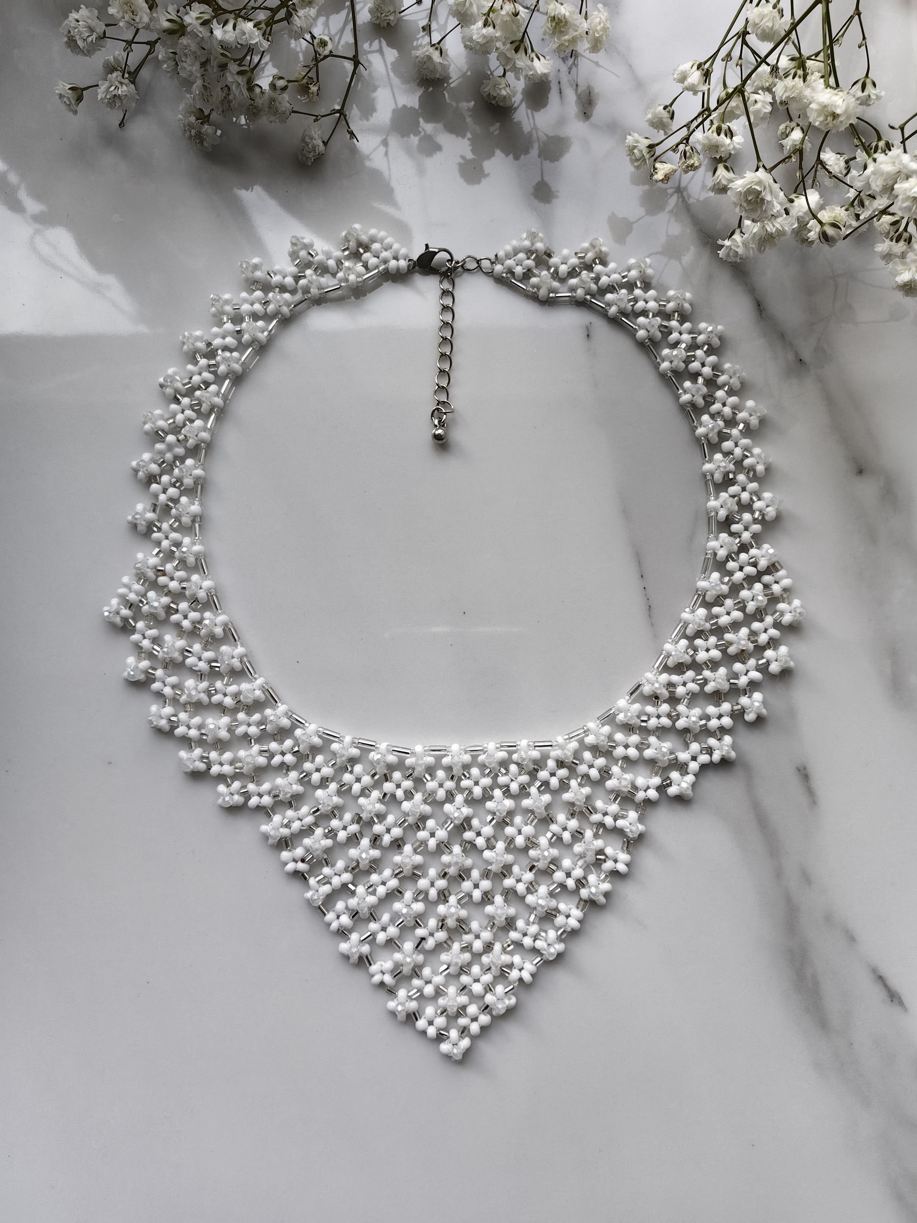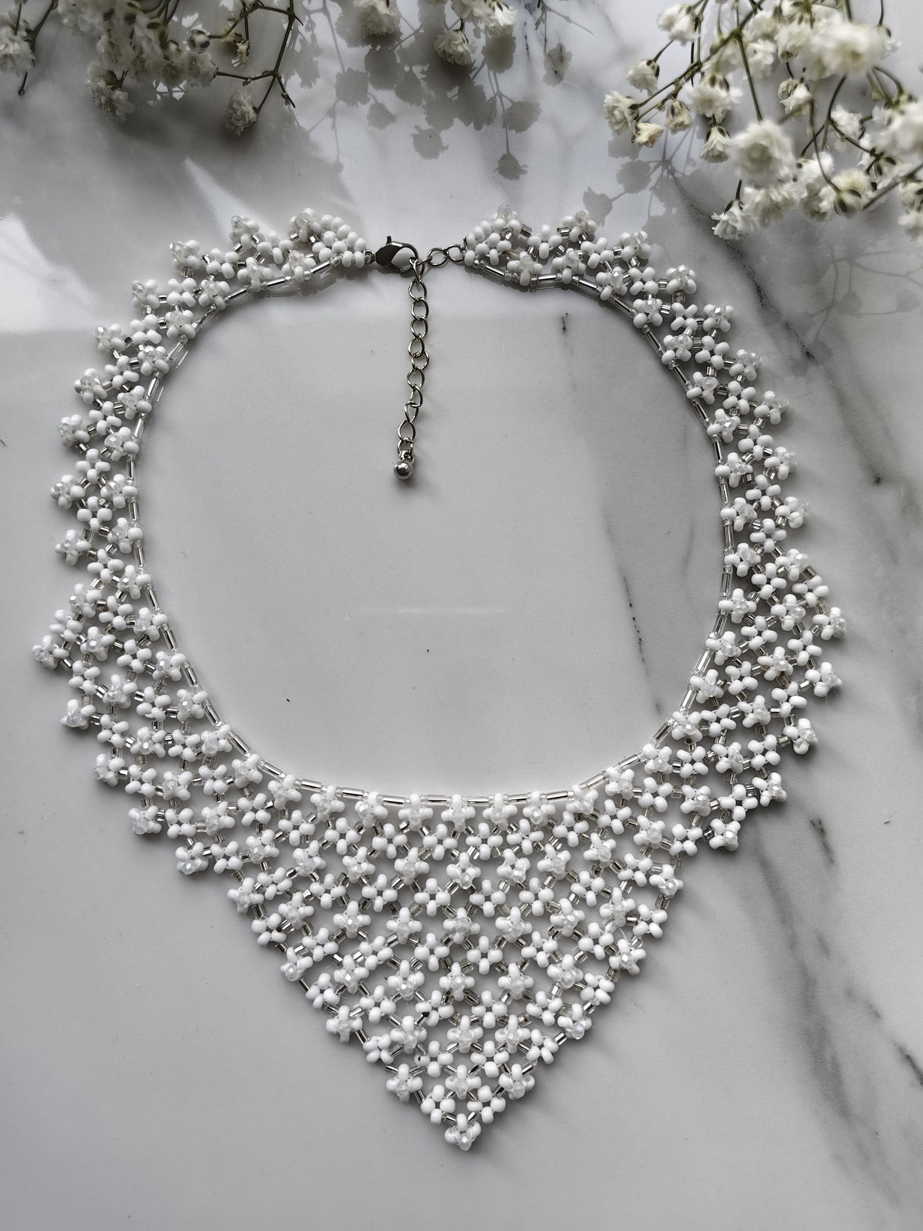 Тонкое и элегантное украшение, которое идеально дополнит образ невесты в её важный день. Чешский бисер, аккуратно собранный в уникальный узор, придаст образу утончённость и изысканность. Классика, которая всегда актуальна.
