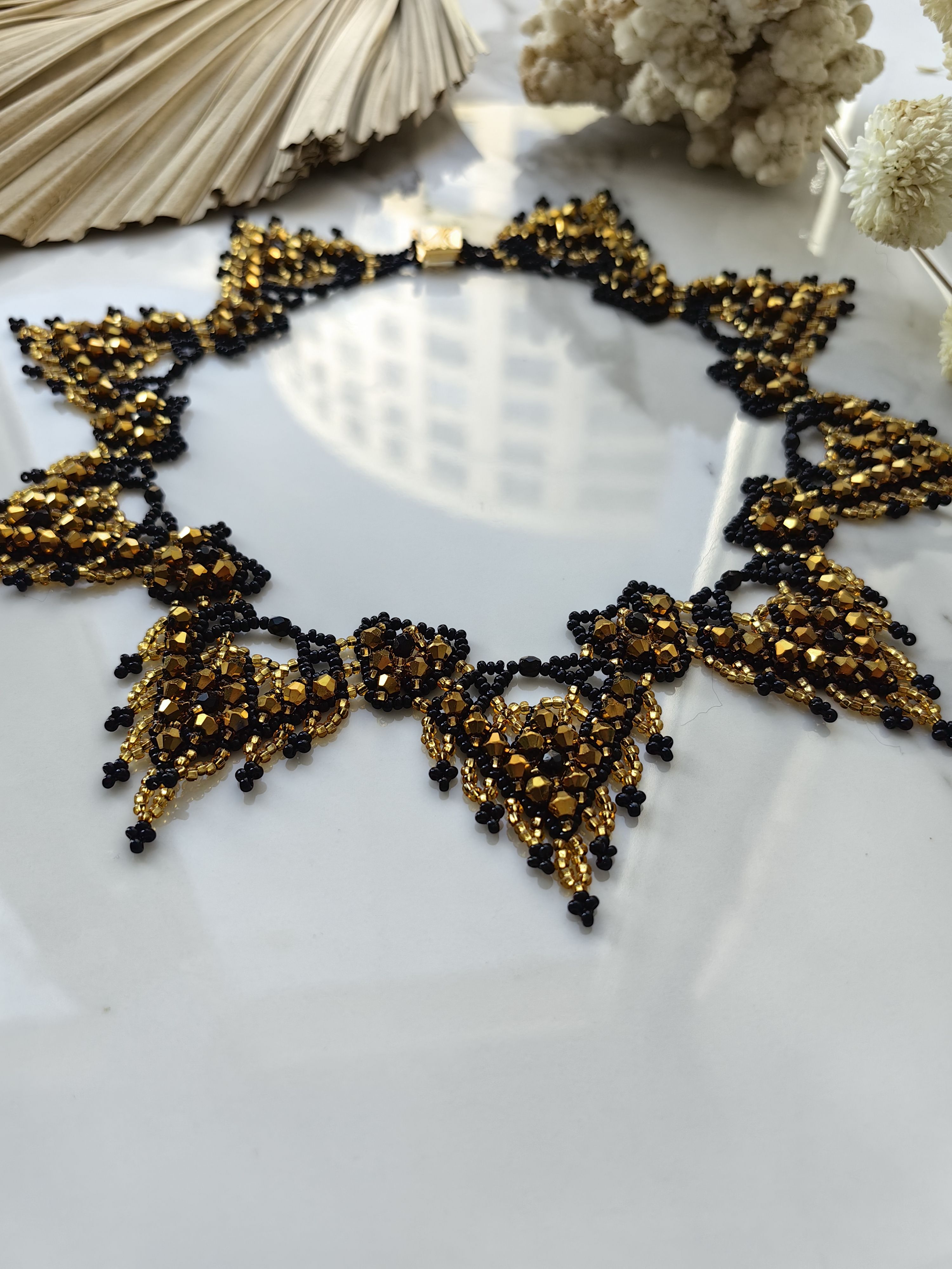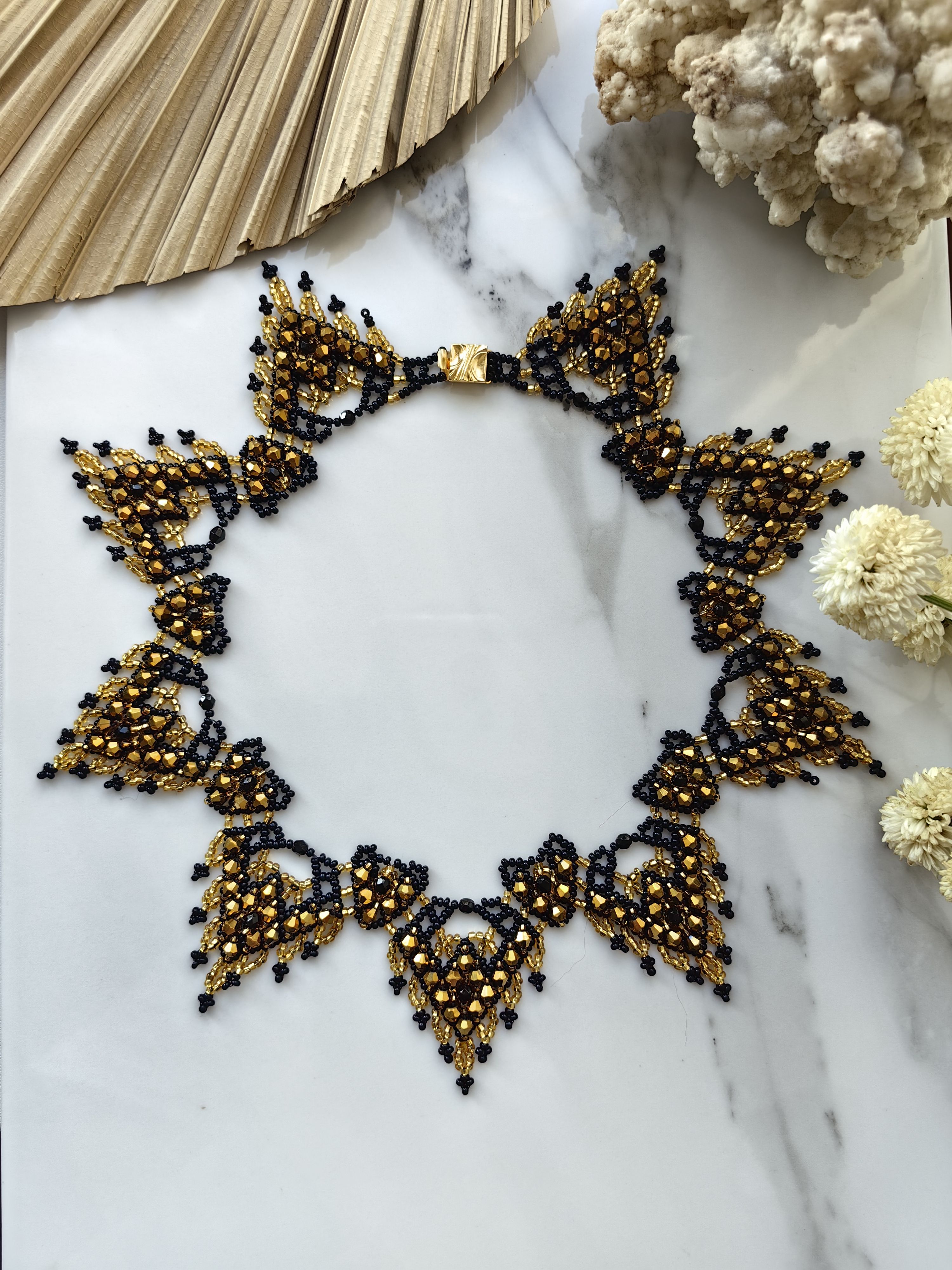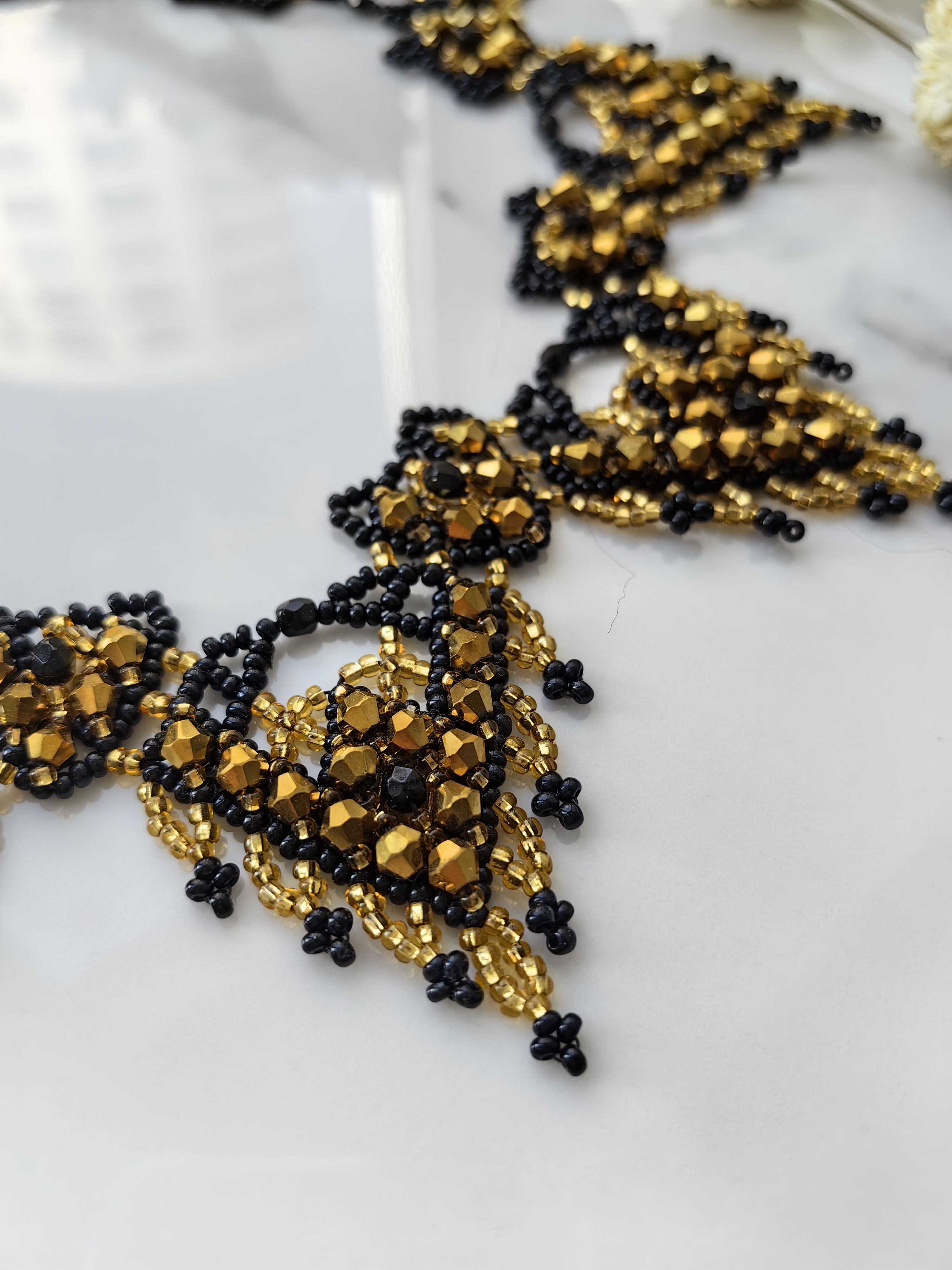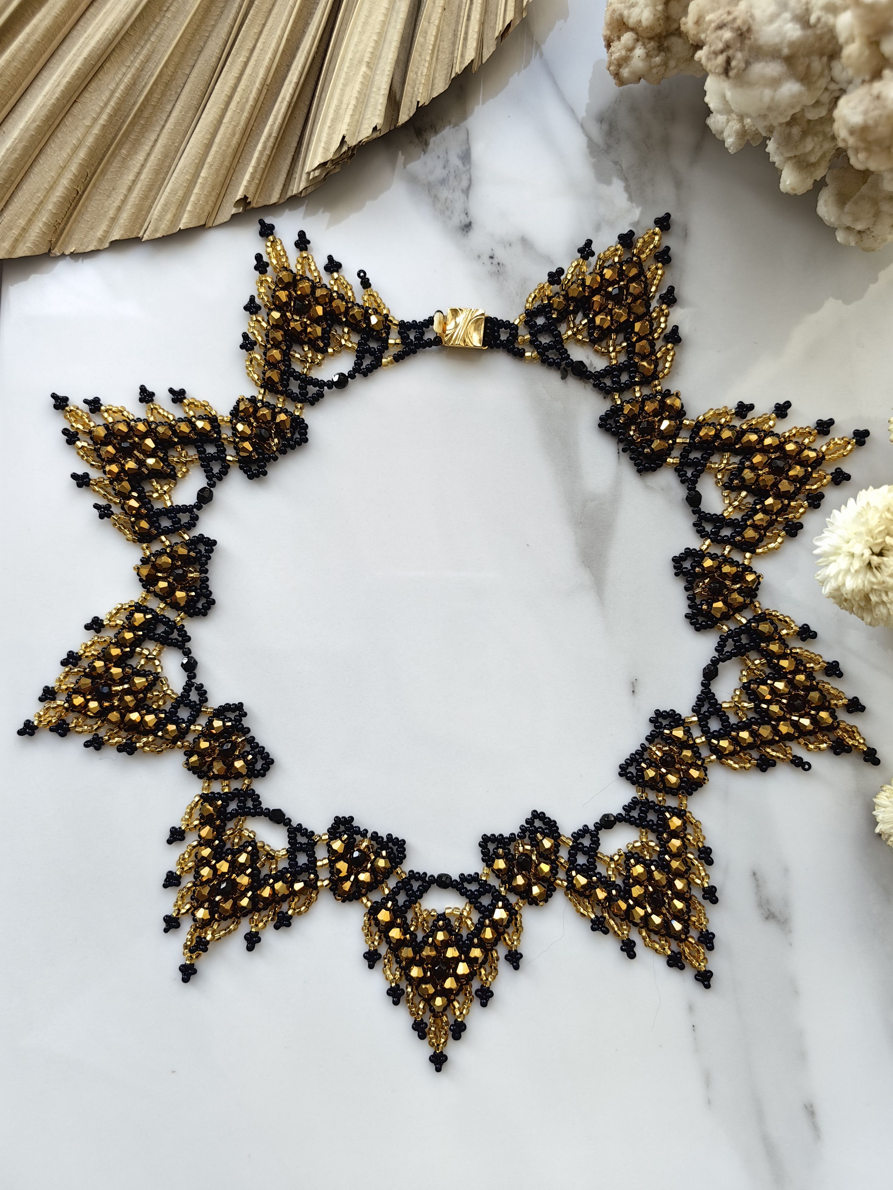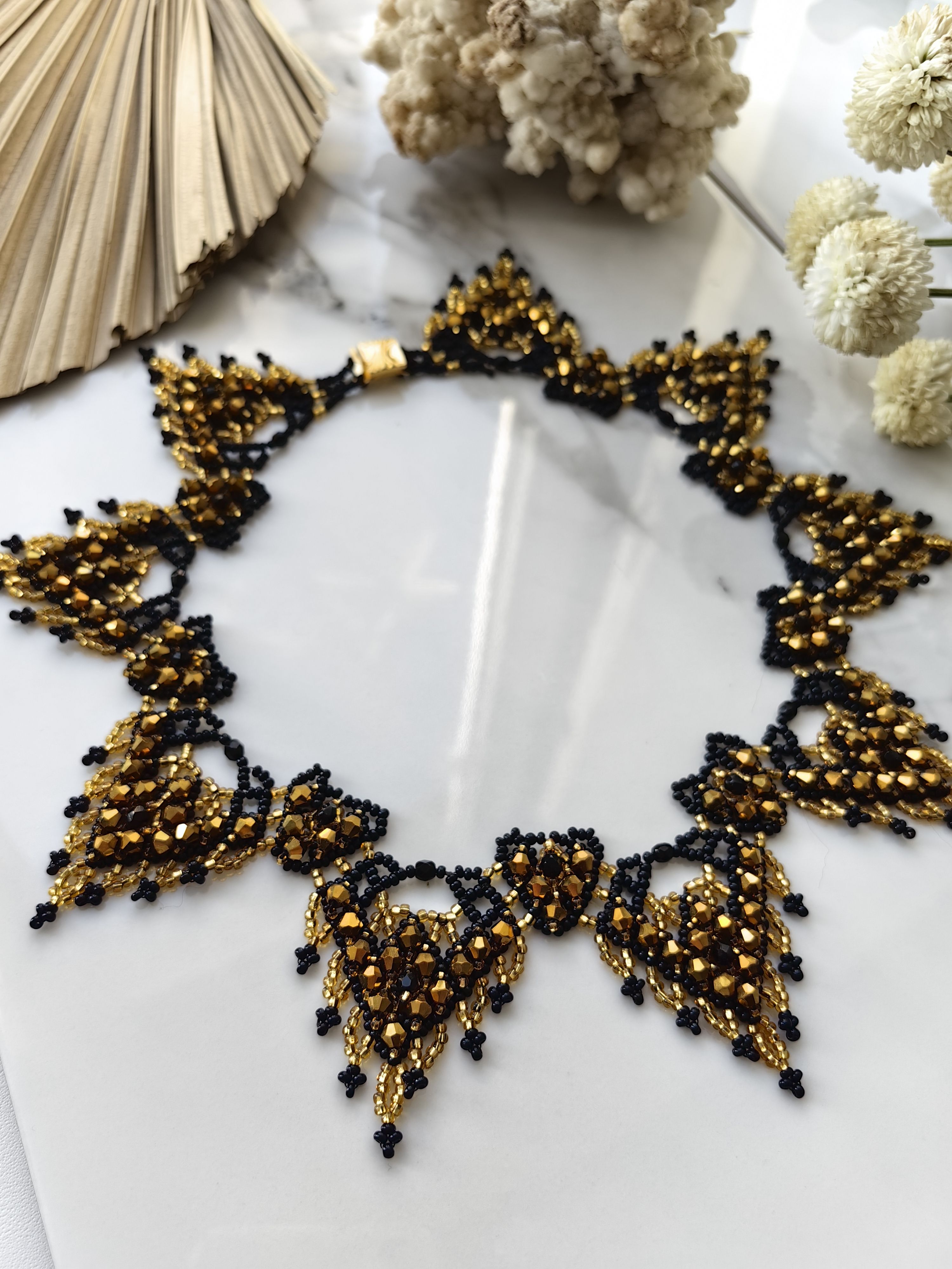 Яркое украшение ручной работы, напоминающее огненный взмах крыльев. Чешский бисер и стеклянные бусины переливаются теплыми оттенками, создавая эффект движения и силы. Лёгкое, но выразительное колье подчеркнёт вашу уверенность и темперамент.