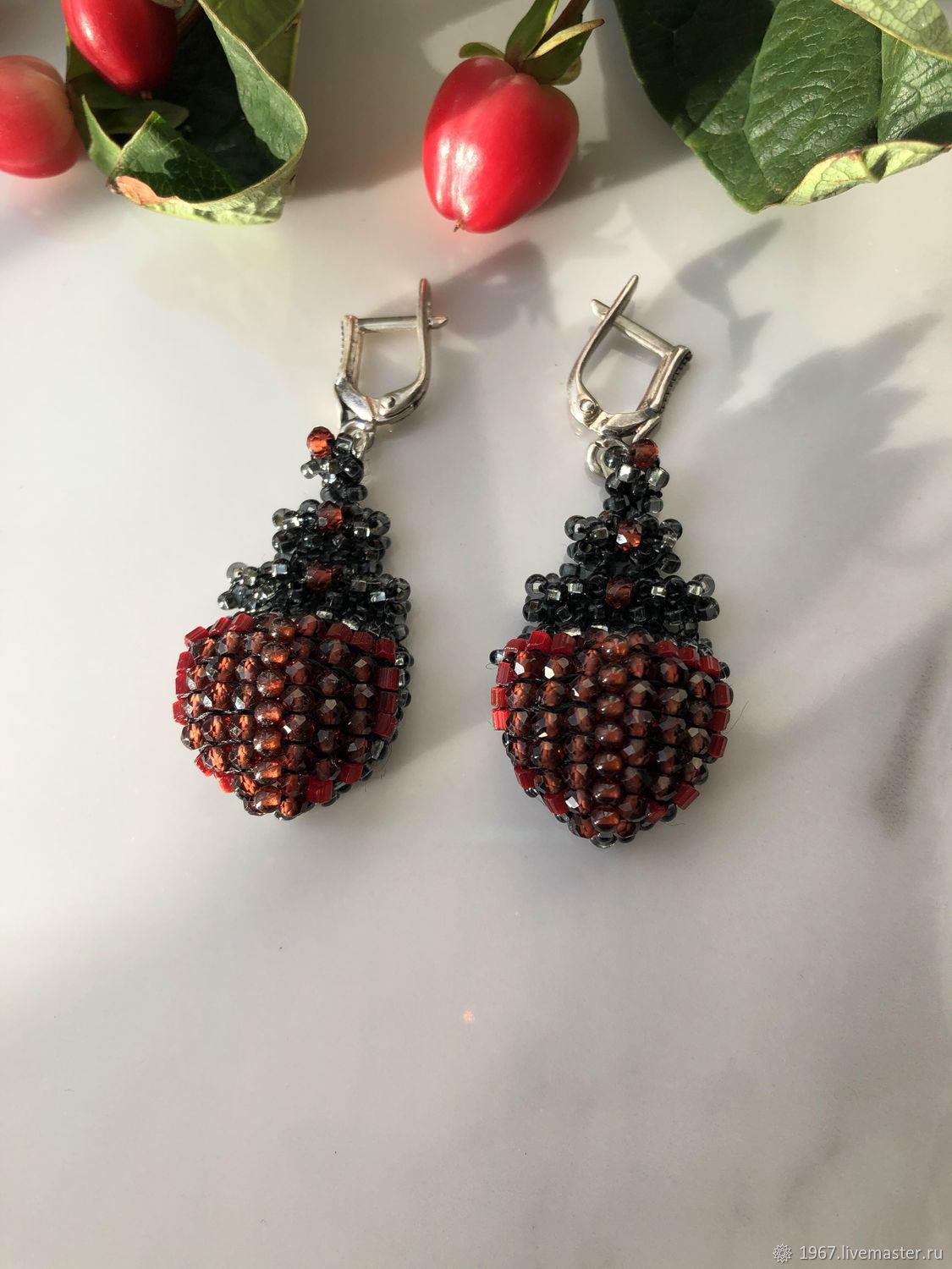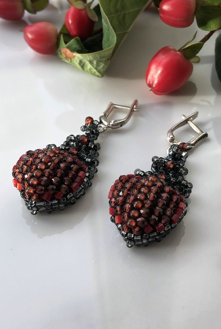 Каждая серьга выполнена на бисерной основе, в которую мастерски вплетены гранатовые бусины диаметром 3 мм. Камни эффектно переливаются в лучах света, подчёркивая вашу женственность и добавляя изысканности образу. Надёжные серебряные швензы обеспечивают комфорт и удобство в носке.