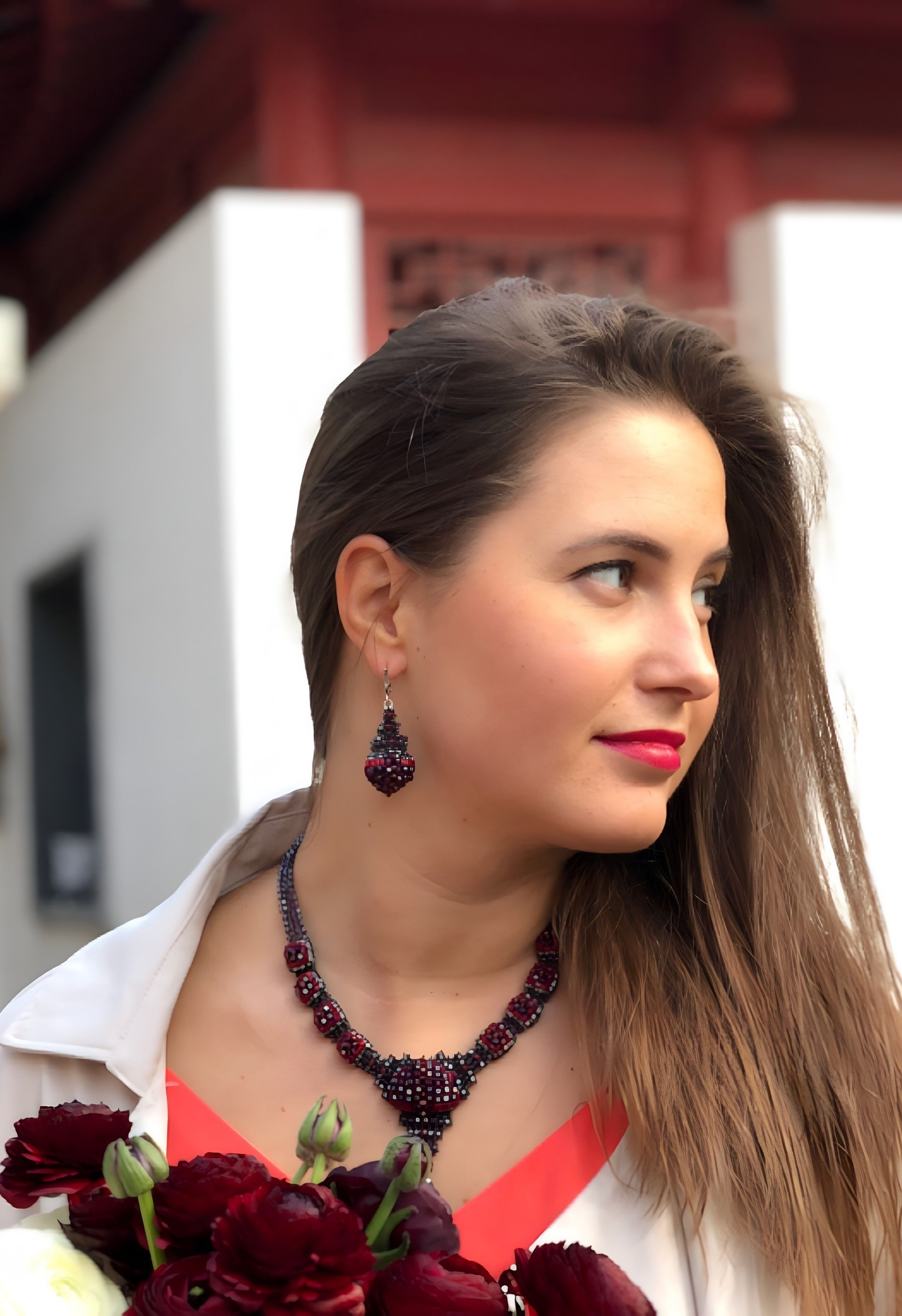 Ручной работы серьги "Ника" с гранатом — это гармоничное сочетание чешского бисера, сверкающих гранатовых бусин и благородных серебряных швенз. Натуральный гранат, камень страсти и жизненной энергии, издавна считался талисманом уверенности, любви и внутреннего света.