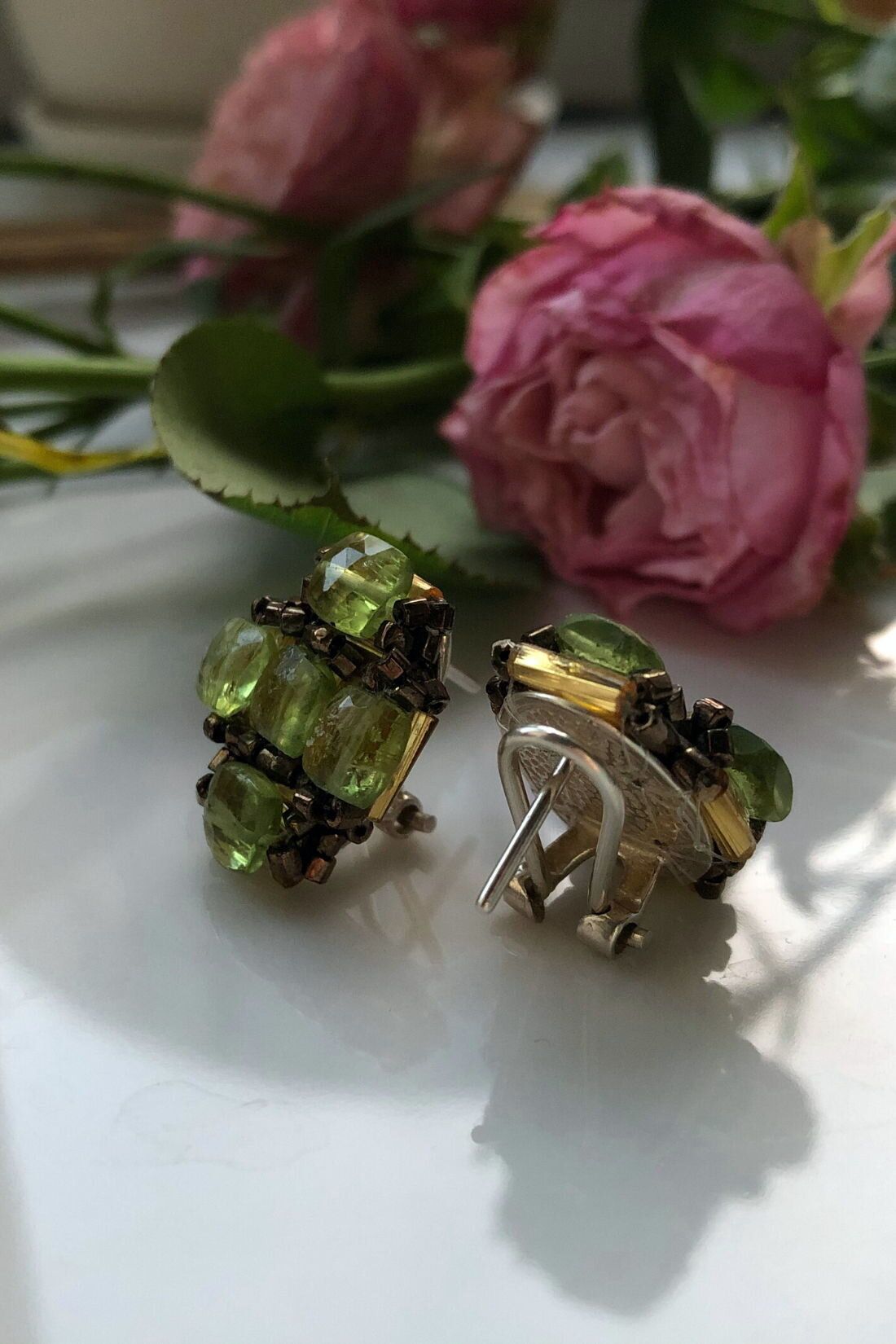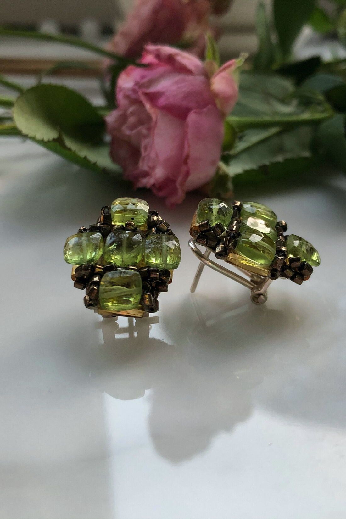 Эти серьги ручной работы созданы для тех, кто ценит изящные детали. Прозрачный блеск чешского бисера гармонично сочетается с природной красотой хризолита, подчёркивая лёгкость и свежесть образа.